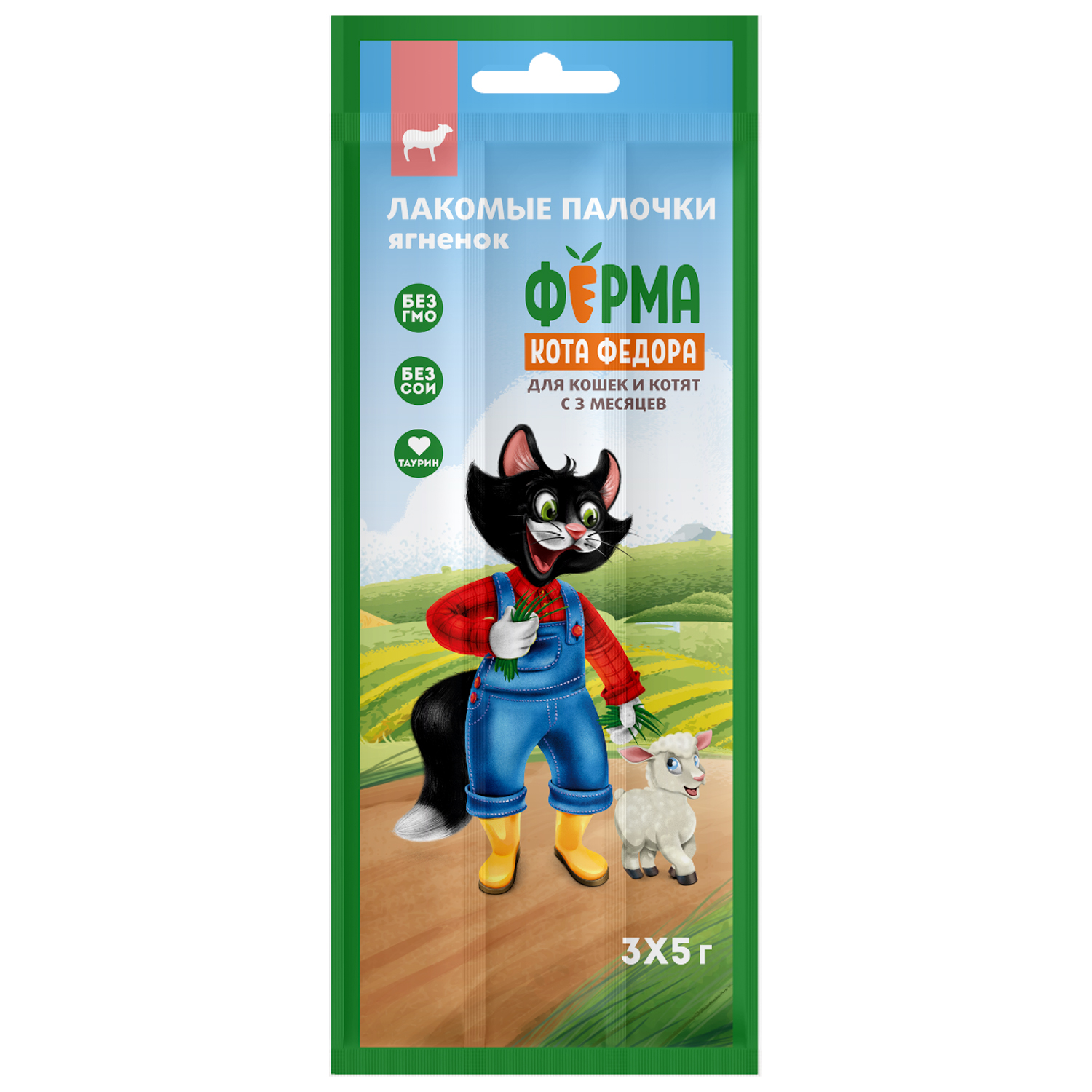 Мнямс для Кошек ФЕРМА КОТА ФЕДОРА лакомые палочки из Ягненка 3х5г