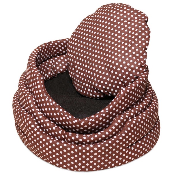 Лежак с бортиком LionPets Trio коричневый в горошек