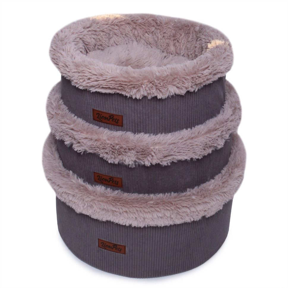 Лежак с бортом ВИСТА, круглый, размер 1, 36*36*h15см, темно-серый велюр, LP649-1, LionPets VISTA Panoramica