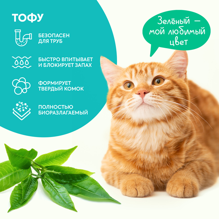 КЭТС ЧОЙС ТОФУ наполнитель для кошачьего туалета растительный, комкующийся, с ароматом зеленого чая, 6л/2,5кг, CAT'S CHOICE Tofu