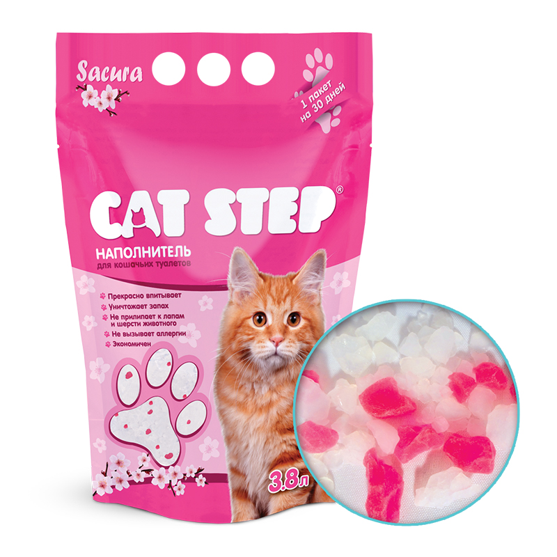 CAT STEP Arctic Pink Cиликагелевый наполнитель для кошачьего туалета с цветными розовыми гранулами моментально впитывает влагу и уничтожает запахи. Пористая структура кристаллов обеспечивает их высокую способность к поглощению жидкостей и запахов. Наполнитель препятствует размножению и развитию бактерий и грибков за счет своего неорганического происхождения. Наполнитель не требует постоянного контроля и ежедневной уборки кошачьего лотка. Содержимого пакета 3,8 л хватает в среднем на 1 месяц использования. Заполните сухой и чистый лоток наполнителем CAT STEP Arctic Pink слоем 3-5 см. Регулярно удаляйте экскременты и перемешивайте наполнитель для равномерного распределения свежих кристаллов. Примерно через 4 недели удалите использованные гранулы и замените их новой порцией наполнителя. Не выбрасывайте использованный наполнитель в унитаз. Объем: 3,8 л.