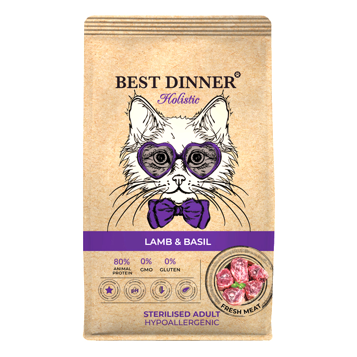 Бест Диннер ХОЛИСТИК сухой корм для стерилизованных кошек, склонных к аллергии, с ягненком и базиликом, 1,5кг, BEST DINNER Holistic Sterilised