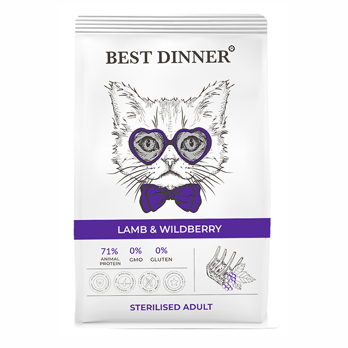 Бест Диннер сухой корм для стерилизованных кошек склонных к аллергии с ягненком и ягодами, 10кг, BEST DINNER Sterilised