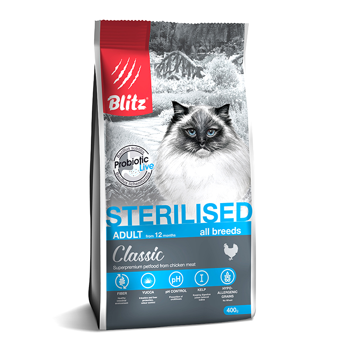Блиц КЛАССИК СТЕРИЛАЙЗД сухой корм для стерилизованных кошек с курицей, 400г, BLITZ Classic Sterilised