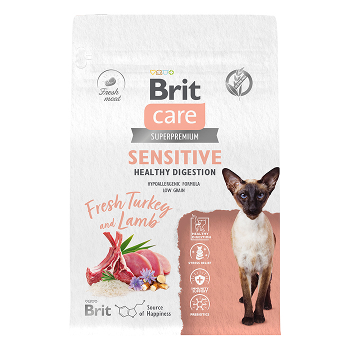 Брит Кеа СЕНСИТИВ сухой корм для кошек с чувствительным пищеварением, с индейкой и ягненком, 400г