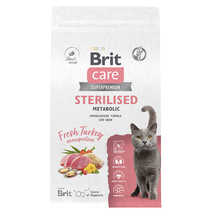 Брит Кеа СТЕРИЛАЙЗД МЕТАБОЛИК сухой корм для стерилизованных кошек для улучшения обмена веществ, с индейкой, 1,5кг