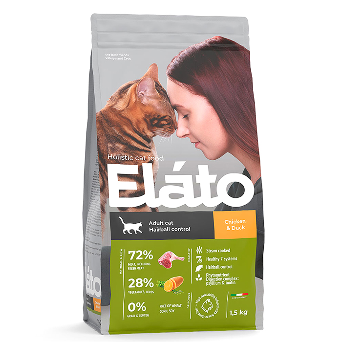 Элато Холистик ХЭЙРБОЛ сухой корм для кошек для выведения шерсти, с курицей и уткой, 1,5кг, ELATO Holistic Hairball Control