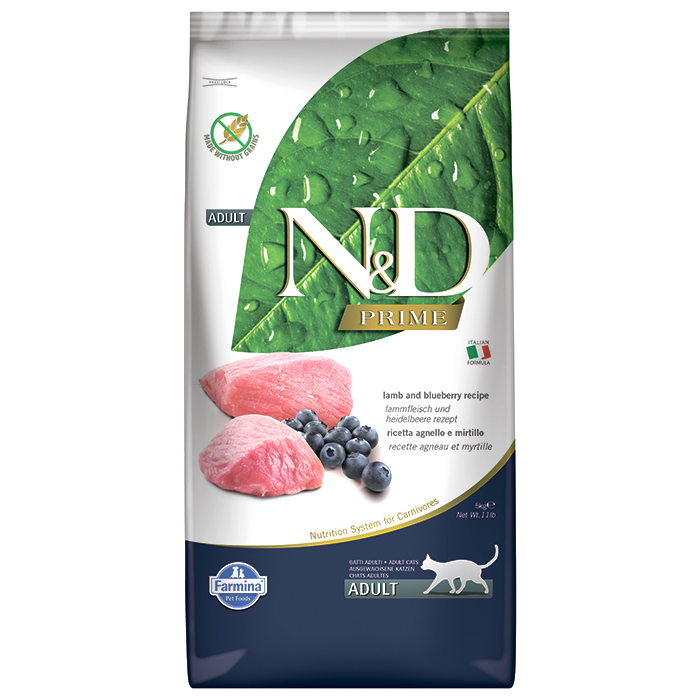 FARMINA N&D PRIME ADULT CAT. Полнорационный беззерновой корм для кошек с ягненком и черникой, 5кг.