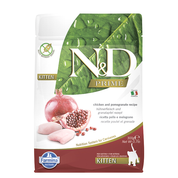 FARMINA N&D PRIME KITTEN. Полнорационный беззерновой корм для котят, беременных и лактирующих кошек с курицей и гранатом, 300г.