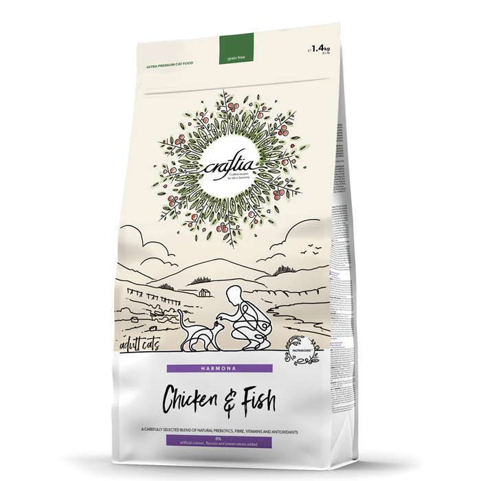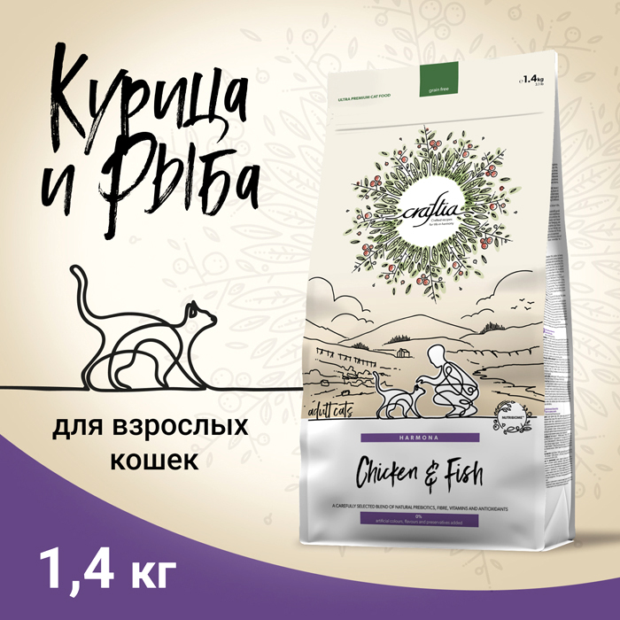 Крафтия Гармония ЭДАЛТ КЭТ сухой корм для кошек с курицей и рыбой, 1,4кг, CRAFTIA HARMONA Adult Cat