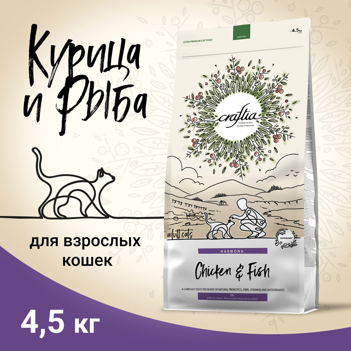 Крафтия Гармония ЭДАЛТ КЭТ сухой корм для кошек с курицей и рыбой, 4,5кг, CRAFTIA HARMONA Adult Cat