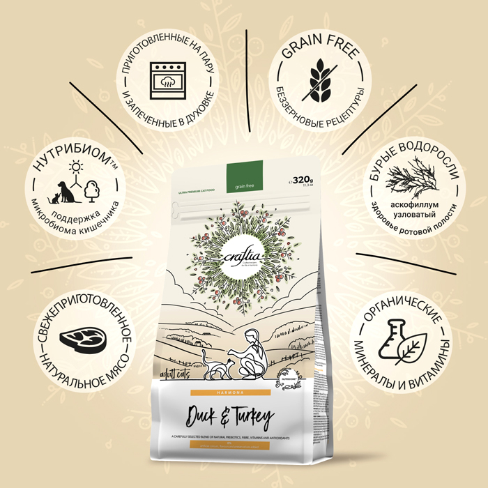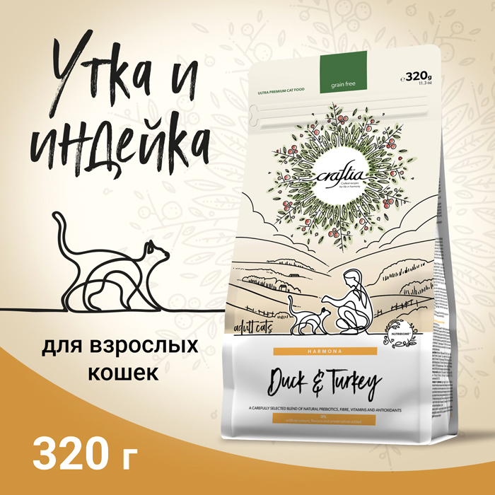 Крафтия Гармония ЭДАЛТ КЭТ сухой корм для кошек с уткой и индейкой, 320г, CRAFTIA HARMONA Adult Cat