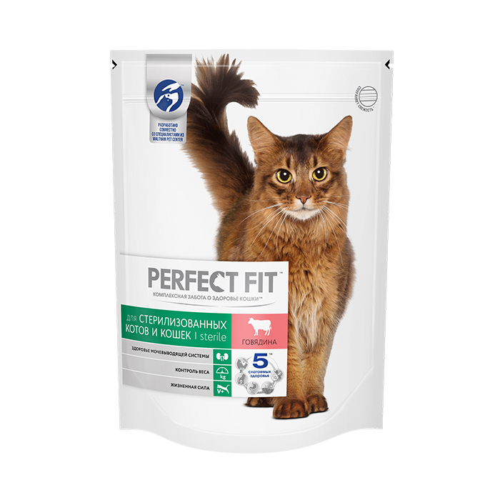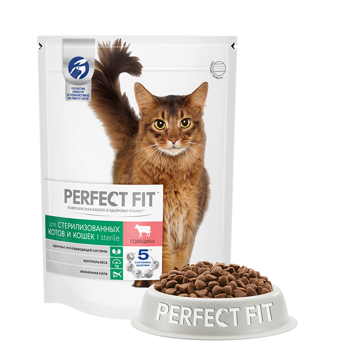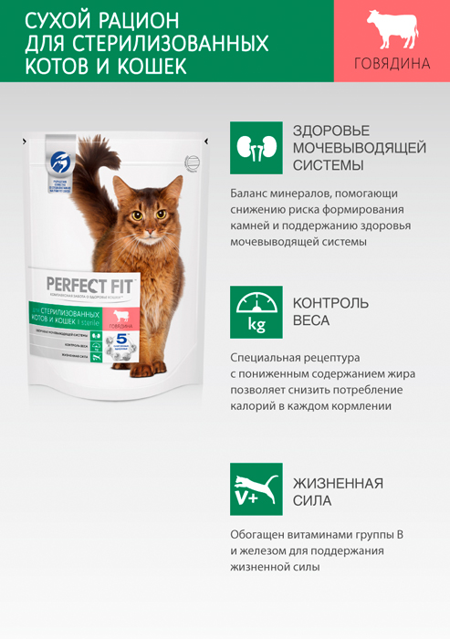 Перфект Фит СТЕРИЛ сухой корм для стерилизованных кошек с говядиной, 650г, PERFECT FIT Sterile