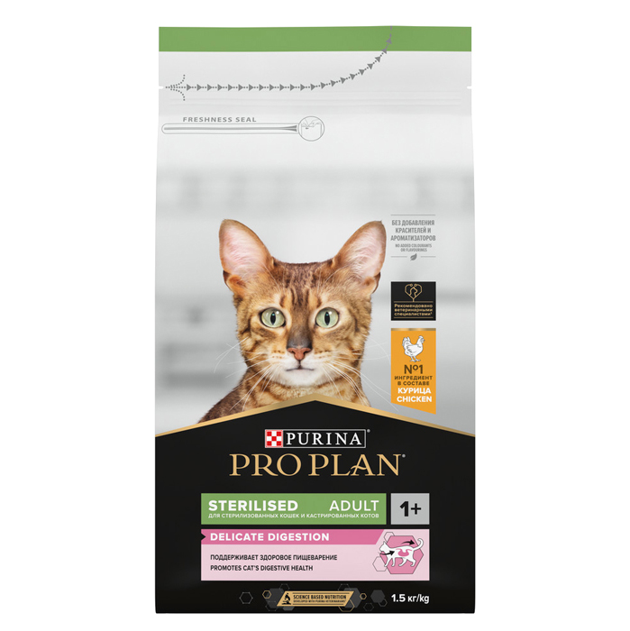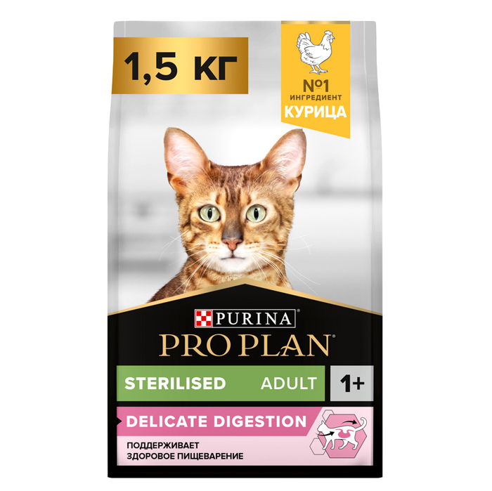Про План СТЕРИЛАЙЗД ДЕЛИКАТ сухой корм для стерилизованных кошек с чувствительным пищеварением, с курицей, 1,5кг, PRO PLAN Sterilised Delicate Digestion
