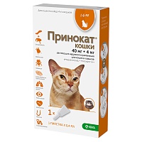 ПРИНОКАТ 40мг для кошек весом до 4кг капли от клещей, блох, власоедов, кишечных, подкожных, носоглоточных, глазных, сердечных и легочных нематод, 1 пипетка 0,4 мл, КRКА Prinocate