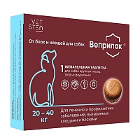 ВЕПРИПАК 1000мг таблетка от блох, иксодовых и чесоточных клещей для собак весом 20-40кг, 1 таблетка, VETSTEM