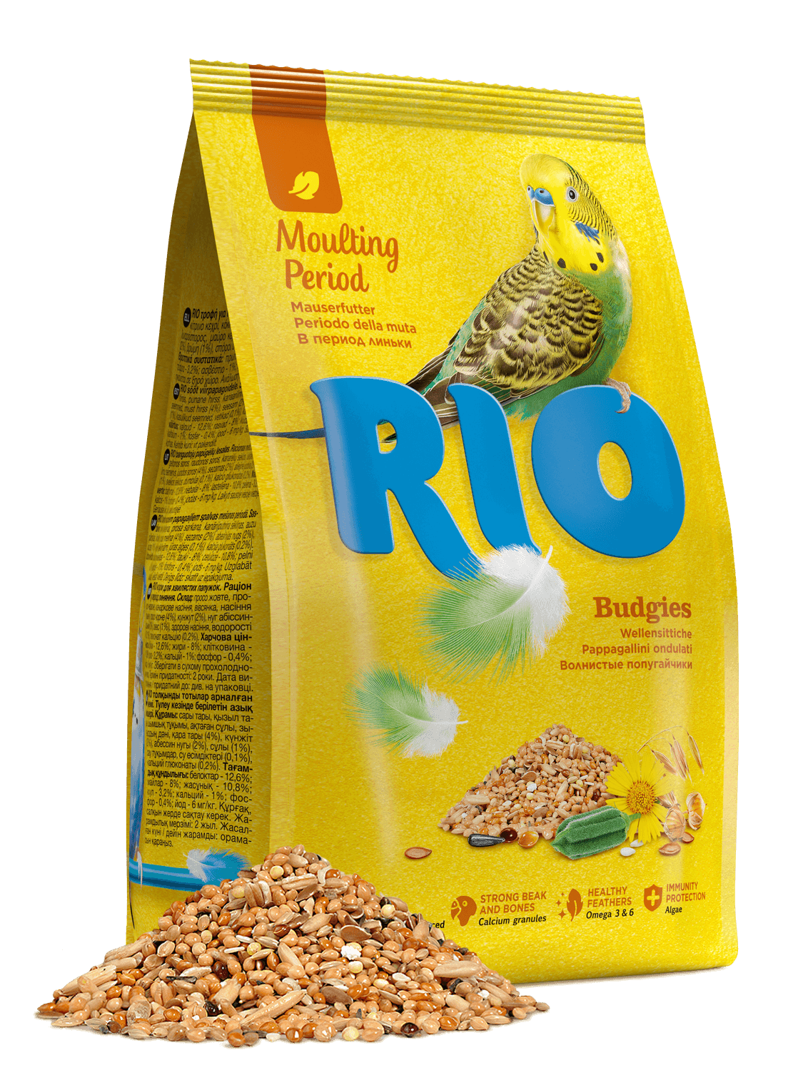 Корм РИО для Волнистых Попугаев в Период Линьки. Рацион в период линьки – зерновая смесь, специально сбалансированная в соответствии с потребностями птиц во время линьки. Повышенное содержание белков и жиров в корме делает процесс смены оперения у волнистых попугайчиков более быстрым и безболезненным. Содержит семена кунжута, богатые кальцием и витаминами.