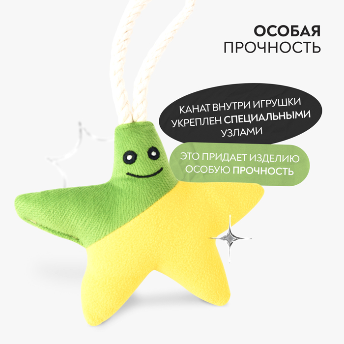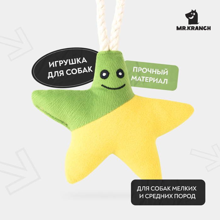 Игрушка для собак ЗВЕЗДОЧКА, с канатом и пищалкой, 26*16см, зеленая/желтая, полиэстер, MKR80257, MR.KRANCH