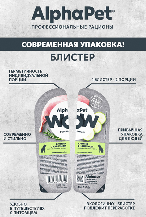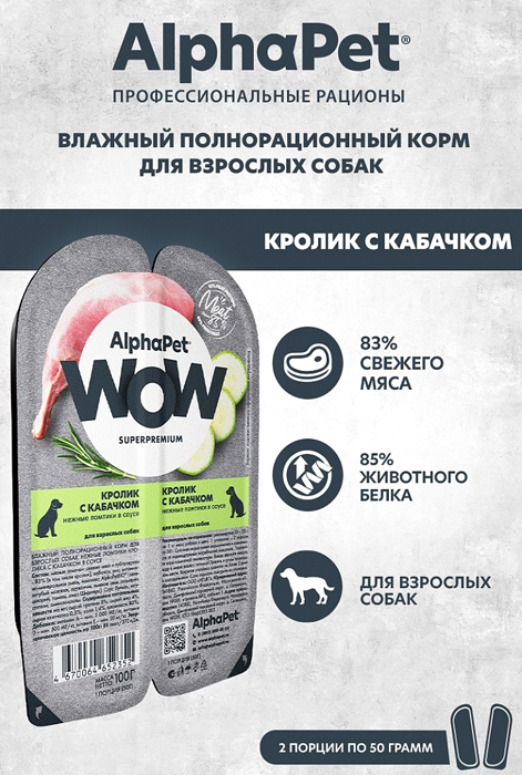 АльфаПет ВАУ влажный корм для собак с кроликом и кабачком в соусе, 100г, ALPHAPET WOW