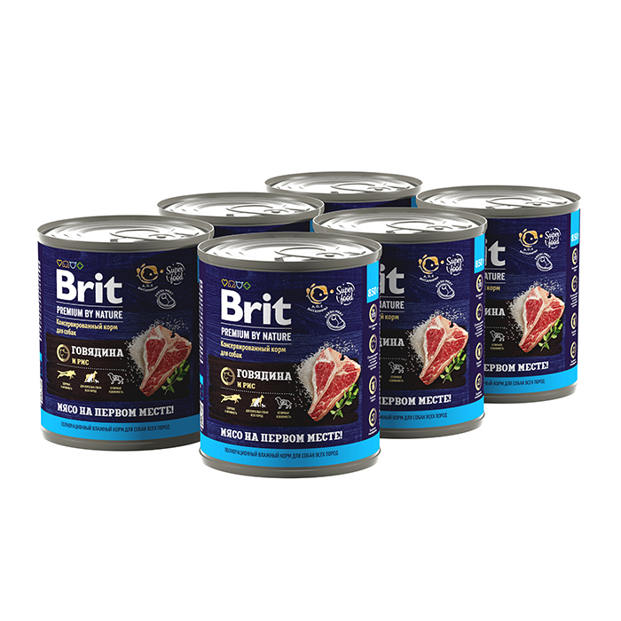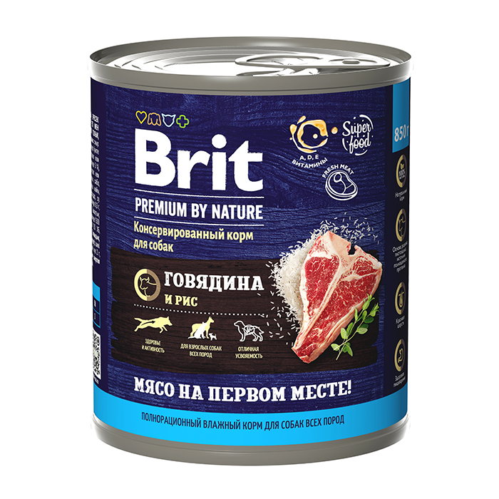 Брит Премиум влажный корм для собак с говядиной и рисом, 850г, BRIT Premium By Nature