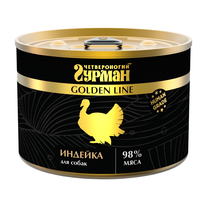 Четвероногий Гурман ГОЛДЕН ЛАЙН влажный корм для собак с индейкой, 525г, Golden Line