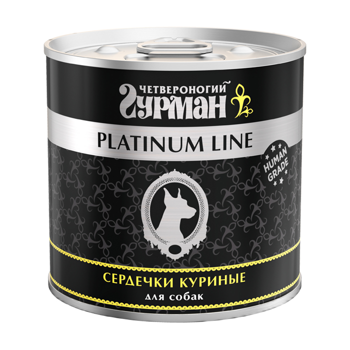 Четвероногий Гурман ПЛАТИНУМ ЛАЙН влажный корм для собак с куриными сердечками, 240г, Platinum Line