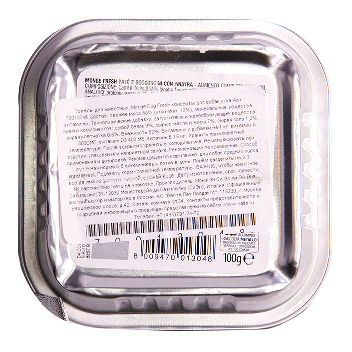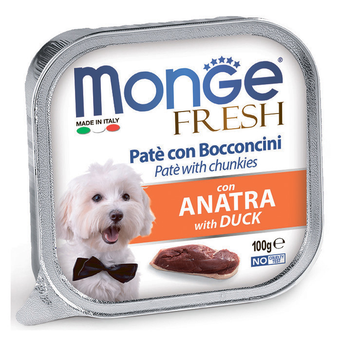 Монж ФРЕШ влажный корм для собак, паштет с кусочками утки, 100г, MONGE Fresh