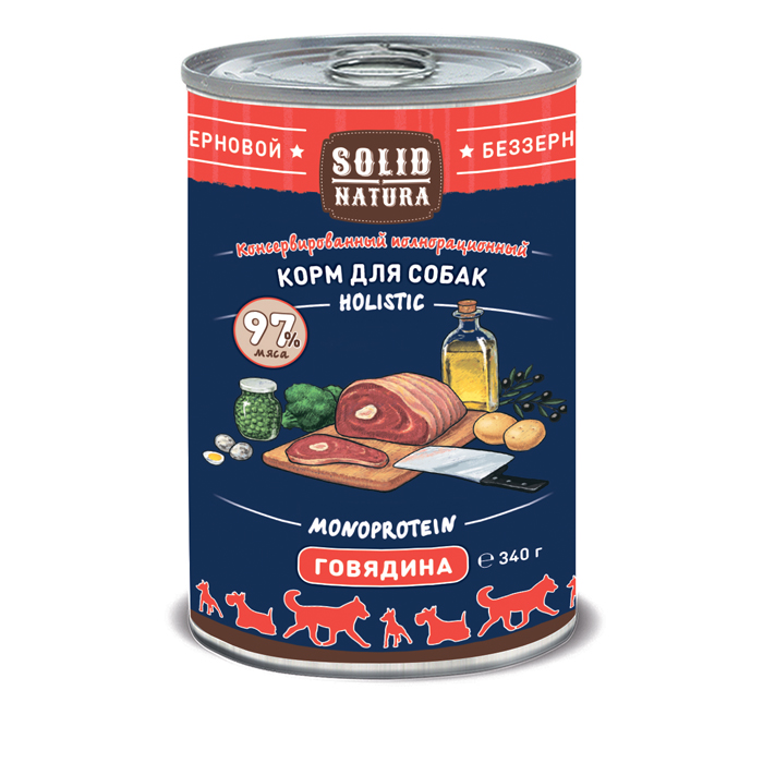 Solid Natura с говядиной - консервированное влажное питание для собак. Беззерновое. Холистическое.
