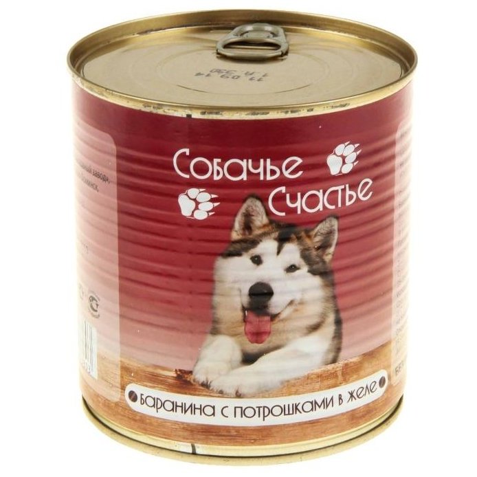 Влажный корм СОБАЧЬЕ СЧАСТЬЕ для собак с бараниной и потрошками, 750 г