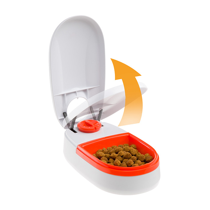 Если вас нет дома, Ферпласт КОМЕТА позаботится о вашем домашнем животном за вас! Этот автоматический диспенсер для корма для собак и кошек подаст корм вашему питомцу в установленное время. Миска Cometa оснащена таймером, позволяющим легко запрограммировать её открытие на промежуток времени до 44 часов. Диспенсер ёмкостью 0,4 литра идеально подходит для маленьких собак и кошек и применяется для наполнения сухим кормом. Если вам нужно обеспечить питомца приёмом пищи дважды в день в разное время, вы можете легко скрепить два диспенсера вместе с помощью специальной соединительной пластины, имеющейся в комплекте.