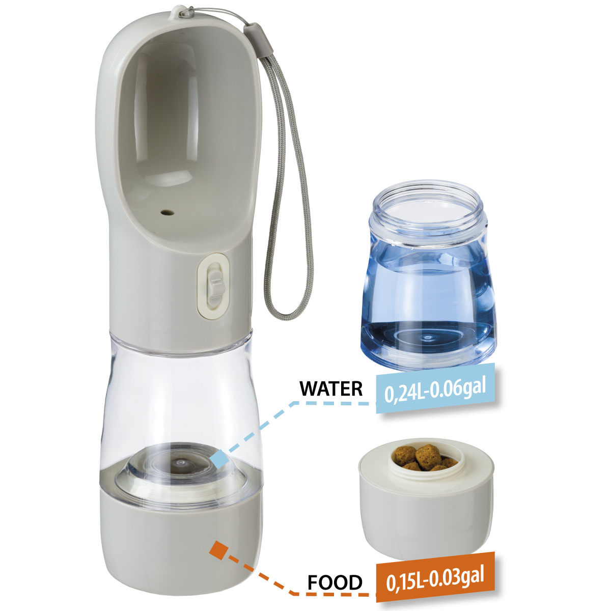 Поилка для животных PA 5509 ТРЭВЛ дорожная, 240мл, 25,5х7см, с емкостью для корма, пластик, 85509099, FERPLAST