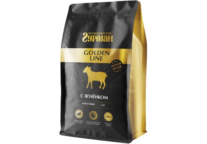Четвероногий Гурман ГОЛДЕН ЛАЙН сухой корм для собак с ягненком, 2кг, Golden Line