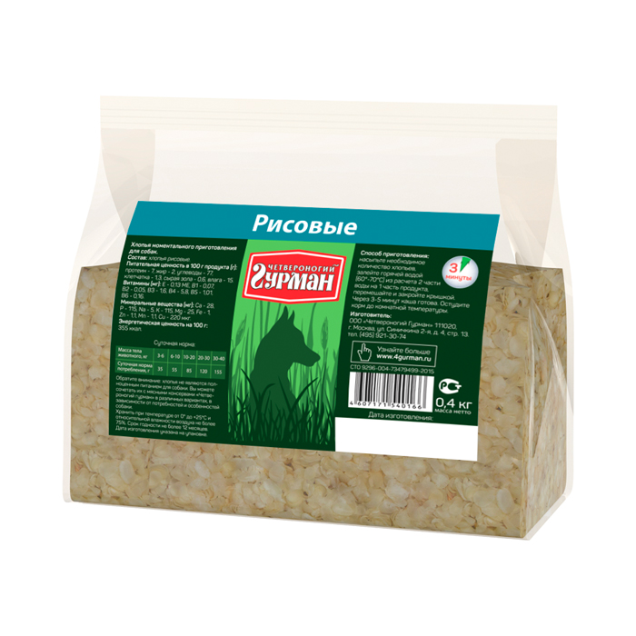 Четвероногий Гурман хлопья рисовые моментального приготовления, 400г
