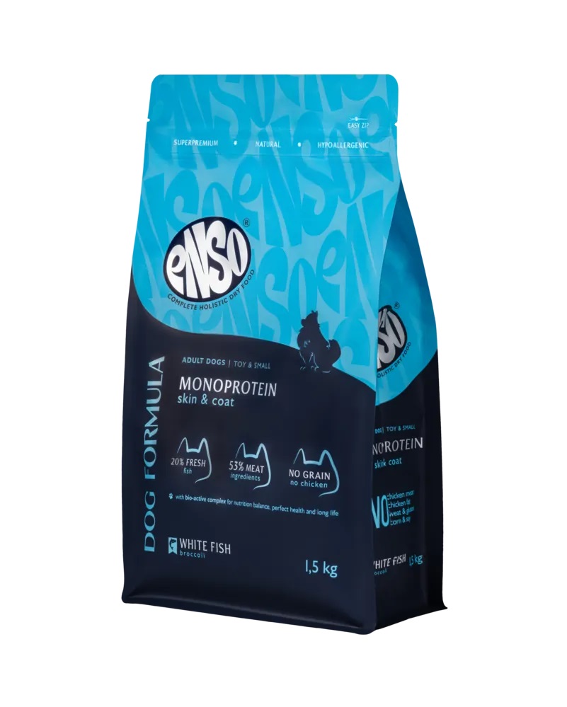 Энсо сухой монопротеиновый корм для собак мелких и миниатюрных пород с белой рыбой и броколли, 1,5кг, 251222, ENSO Monoprotein