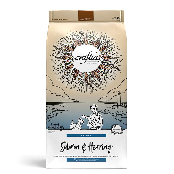 Крафтия Натура ЭДАЛТ СМОЛЛ БРИД сухой корм для собак мини и мелких пород с лососем и сельдью, 2кг, CRAFTIA NATURA Adult Toy & Small Breed