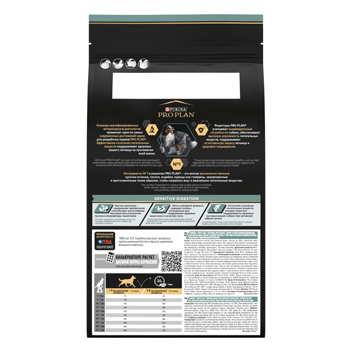 Сухой корм PRO PLAN® SENSITIVE DIGESTION для взрослых собак средних пород с чувствительным пищеварением, с высоким содержанием ягненка, 1.5кг. Чувствительное пищеварение - одна из самых часто встречающихся особенностей организма собак, когда они не могут нормально усваивать рацион, не вызывающий проблем у других животных. В результате неправильно подобранного питания у собак могут возникнуть нарушения работы желудочно-кишечного тракта, вздутие живота, диарея, метеоризм. Поэтому для питомцев с чувствительным пищеварением важно подобрать специальный корм, который легко усваивается и переваривается, а также способствует улучшению баланса микрофлоры кишечника. Изучая потребности собак на протяжении многих лет, команда квалифицированных ветеринарных специалистов и диетологов PURINA разработала сухой корм PRO PLAN® Sensitive digestion (для чувствительного пищеварения) — ежедневный рацион с высоким содержанием ягненка для взрослых собак средних пород. Этот полнорационный корм сбалансирован по составу и помогает поддержать здоровое пищеварение. ПРЕИМУЩЕСТВА: ✔ Содержит пребиотики, способствующие росту бифидобактерий для улучшения баланса микрофлоры кишечника ✔ Содержит особые ингредиенты для поддержания здоровья кишечника и качества стула ✔ Помогает поддерживать здоровье суставов при активном образе жизни. Рационы PRO PLAN® разработаны на основе современных научных достижений и рекомендованы ветеринарными специалистами. Ингредиенты № 1 в рационах PRO PLAN® для собак — это всегда высококачественные кусочки ягненка, лосося, курицы и говядины, приготовленные таким образом, чтобы сохранить вкус и важнейшие питательные вещества. Корм сухой для взрослых собак средних пород PRO PLAN® Sensitive digestion (для чувствительного пищеварения) — это полюбившийся PRO PLAN® Opti Digest (Опти Дайджест) с новым названием, но с прежним составом и качеством.