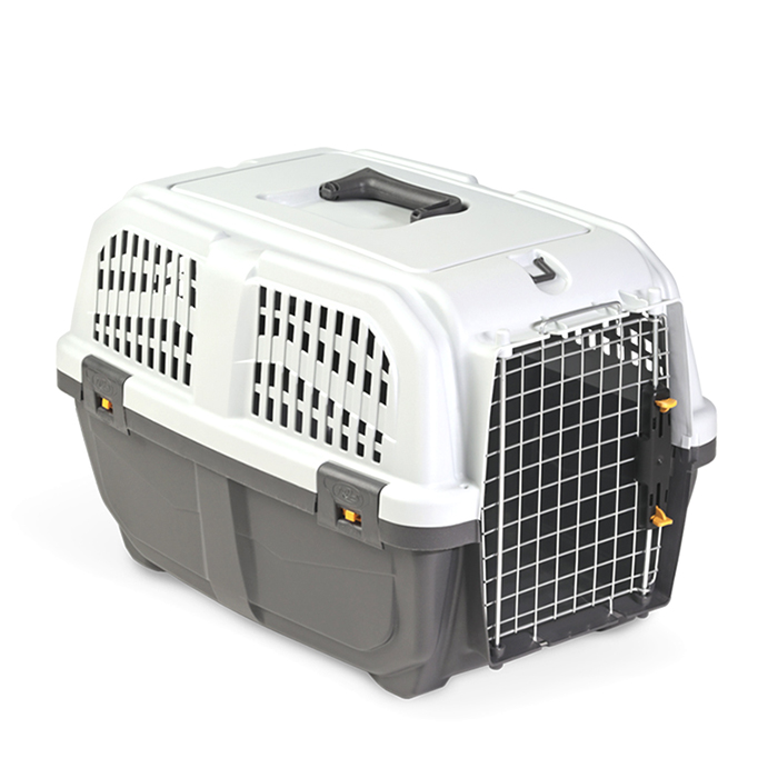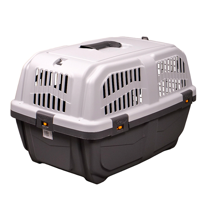 Переноска (транспортный бокс) MPS SKUDO 3 для собак средних пород, с металлической дверцей и замком, серая, 60*41*h40см. Переноска разработана специально для транспортировки кошек и собак средних пород. Оснащена металлической дверцей, которая надежно запирается сверху и снизу и имеет дополнительные поворотные фиксаторы, что обеспечивает безопасность питомцев во время путешествий. Поддон на ножках также крепится к корпусу переноски современными и прочными замками-защелками. Благодаря удобной ручке и петлям для крепления ремня владелец питомца может выбирать, как ему удобнее нести переноску. Простая, но надежная конструкция изделия легко собирается и моется. Максимально допустимый вес животного для данной переноски 20 кг. Соответствует стандартам ж/д и авиа (багажное отделение) перевозок.