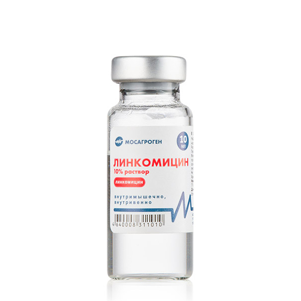 Линкомицин 10 %, раствор для инъекций, 10мл. Линкомицин 10 % раствор относится к антибактериальным препаратам группы линкозамидов. Линкомицин 10 % раствор применяют свиньям, телятам, собакам и кошкам для лечения респираторных заболеваний, актиномикозов, остеомиелитов и других заболеваний, вызванных чувствительными к антибиотику микроорганизмами.