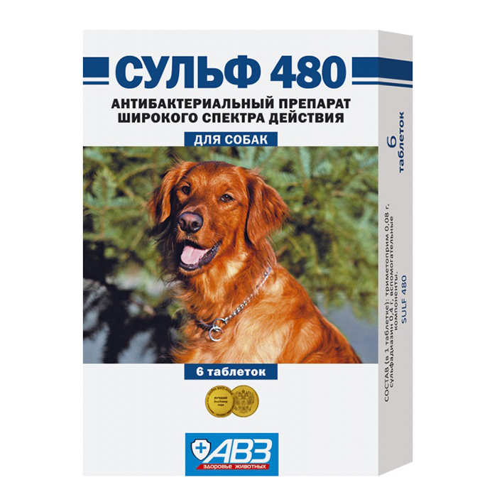 СУЛЬФ-480 средство Антибактериальное для Собак 6таб, АВЗ