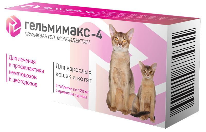 Гельмимакс-4 назначают взрослым собакам и кошкам, щенкам и котятам с профилактической и лечебной целью при нематодозах (токсокароз, токсаскаридоз, унцинариоз, трихоцефалез, анкилостомоз), цестодозах (тениидоз, дипилидиоз, эхинококкоз, дифиллоботриоз, альвеококкоз, мезоцестоидоз) и смешанных нематодо-цестодозных инвазиях, а также для профилактики дирофиляриоза.