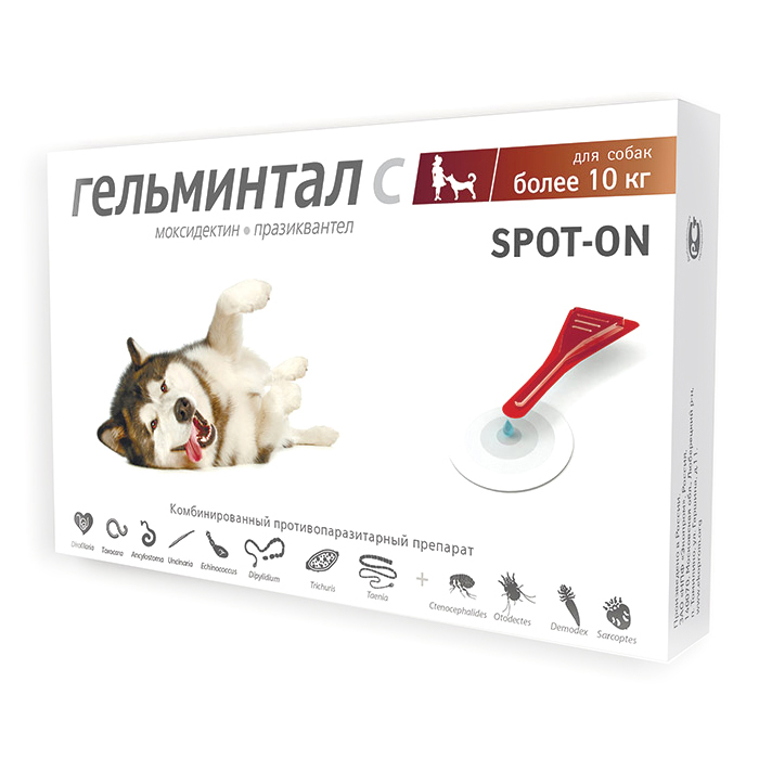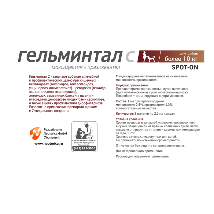 ГЕЛЬМИНТАЛ Спот-Он капли на холку от внутренних и внешних паразитов для собак более 10кг, 2 пипетки, NEOTERICA