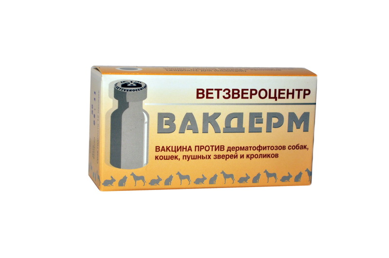 Вакцина Вакдерм для профилактики и лечения дерматофитозов (трихофитии и микроспории) кошек, собак, пушных зверей и кроликов.