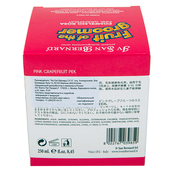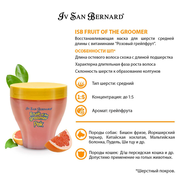 Ив Сен Бернар ФРУТ РОЗОВЫЙ ГРЕЙПФРУТ маска для средней шерсти с витаминами, 250мл, IV SAN BERNARD Pink Grapefruit Mask