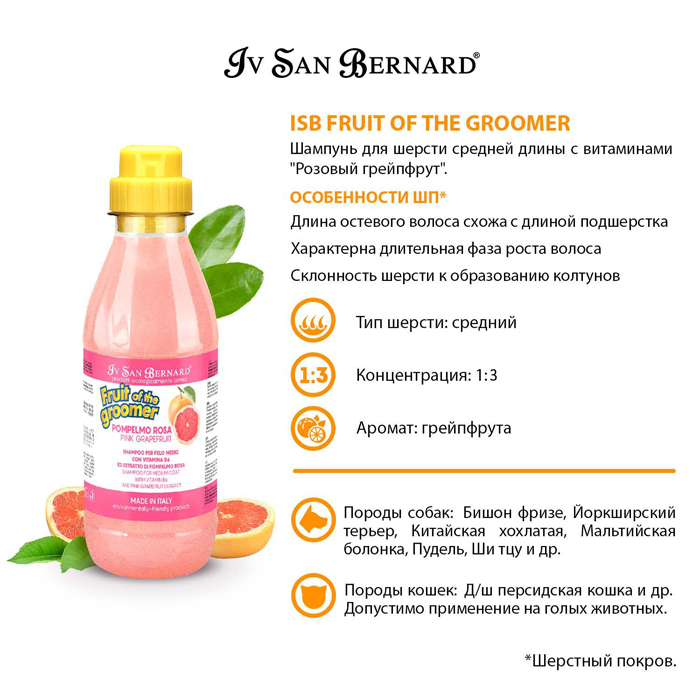 Ив Сен Бернар ФРУТ РОЗОВЫЙ ГРЕЙПФРУТ шампунь для средней шерсти с витаминами, 500мл, IV SAN BERNARD Pink Grapefruit Shampoo