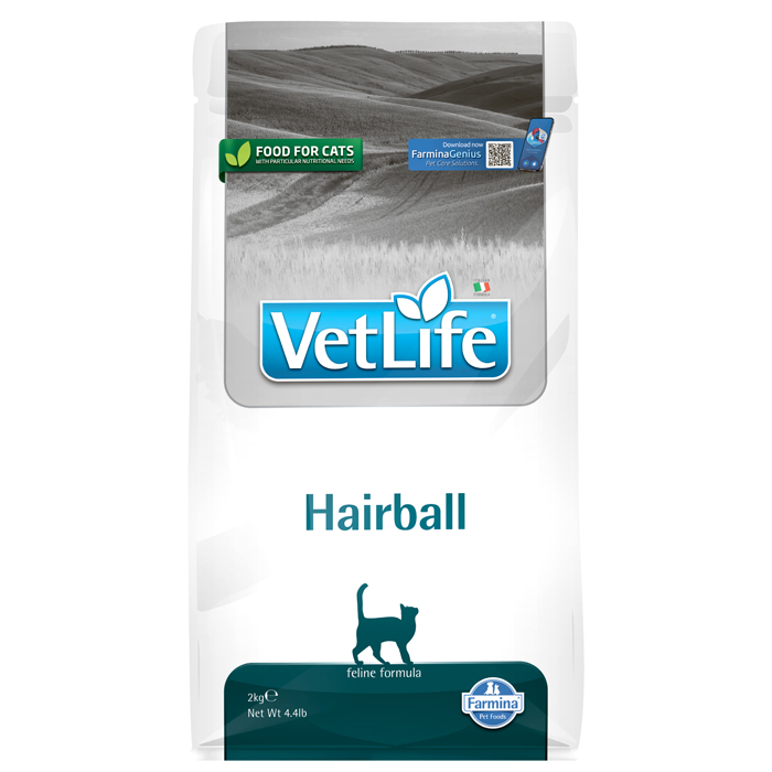 FARMINA VET LIFE HAIRBALL. Полнорационное питание для взрослых кошек, способствующее выведению комочков шерсти из желудка и кишечника. Упаковка 2кг.
