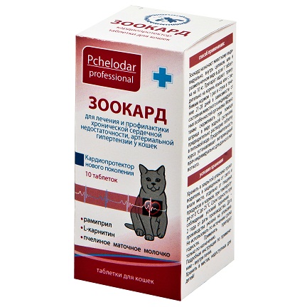 ЗООКАРД для Кошек, лечение и профилактика сердечной недостаточности, туба 10 таб, PCHELODAR