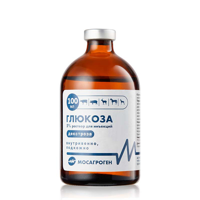 Изотонический раствор глюкозы применяют для пополнения организма жидкостью и легкоусвояемым, ценным питательным материалом. В тканях глюкоза распадается с выделением энергии. Глюкоза стимулирует синтез гормонов и ферментов, повышает защитные силы организма животных. После введения глюкоза быстро всасывается из места инъекции и распределяется в органах и тканях животного. Глюкозу 5% применяют животным при больших потерях организмом жидкости (кровотечения, токсическая диспепсия), явлениях шока, интоксикациях, метритах, вагинитах, а также для растворения различных лекарственных препаратов.