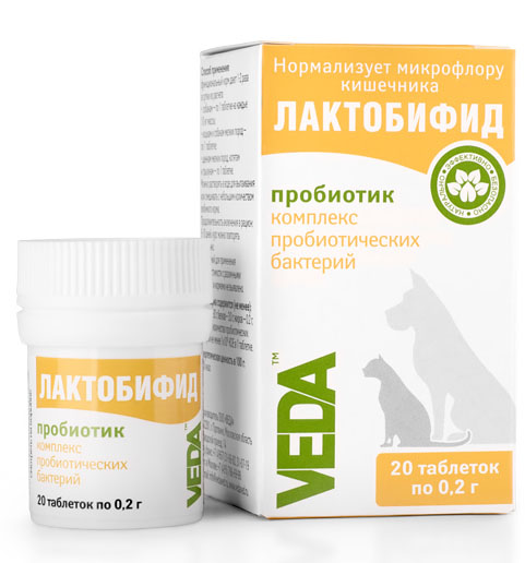 ЛАКТОБИФИД пробиотик для нормализации микрофлоры кишечника Собак и Кошек, банка 20 таб. VEDA