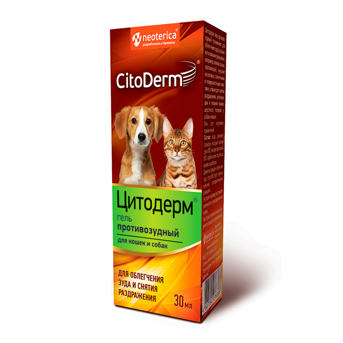 Когда наши питомцы страдают от зуда — у них появляется непреодолимое желание чесаться. Они могут расчесать себе кожу, расцарапать когтями, занести инфекцию. Для снятия зуда и профилактики осложнений используйте противозудный гель CitoDerm!