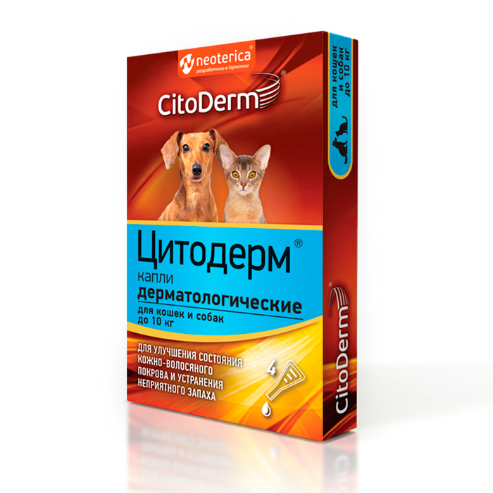 Цитодерм капли дерматологические для кошек и собак до 10кг, 4 пипетки, CITODERM